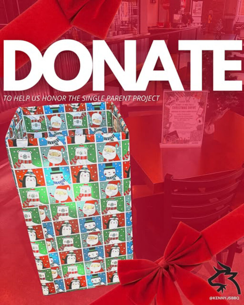 The good folks at Kenny J’s invite you to join them in giving back this Christmas. They are hosting a Christmas Drive honoring The Single Parent Project and ask for “your help to make the season brighter for local families.”