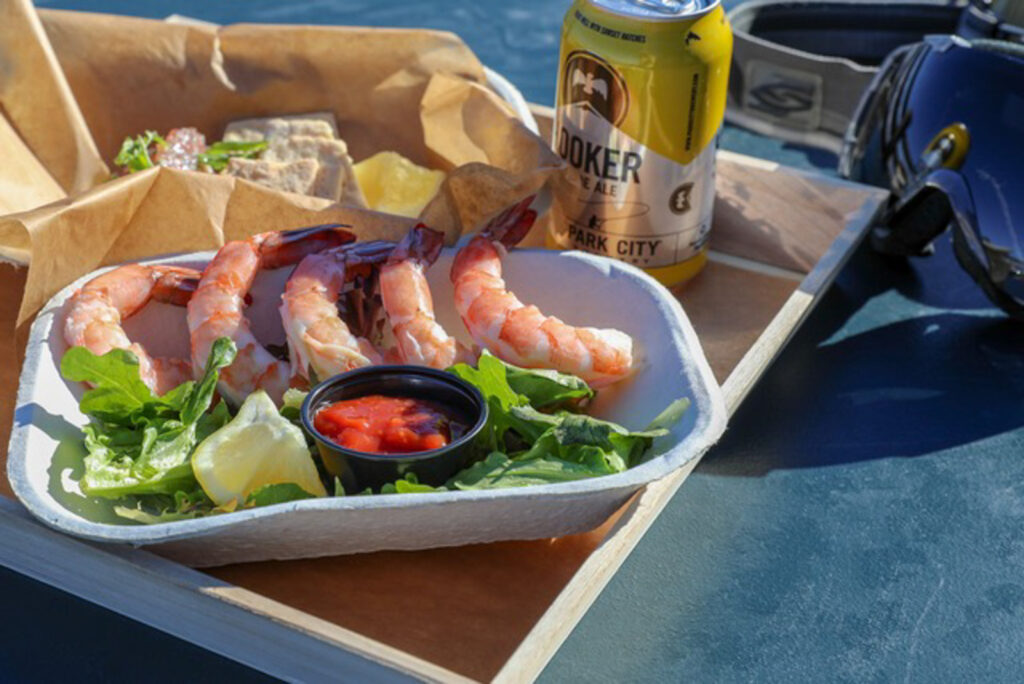 RIME Seafood + Raw Bar serves New England favorites like clam chowder, lobster rolls, oysters on the half shell, and bubbles on snow from its perch in a refurbished cabin atop the Jordanelle Gondola at Deer Valley Resort. For reservations and more information, visit rimerawbar.com.