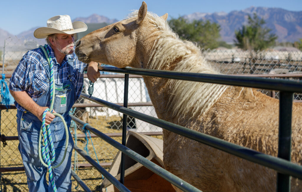 Gil was able to purchase a new ranch to house the animals, but it wasn’t set up the same way Gardner Village had been, and it was no longer a commercial situation. To keep the rescue going, Gil had to get creative. He started taking the animals to the people rather than have the people visit them. He offers birthday parties and runs the pony rides at the state fair. He also does therapy visits at assisted living and memory care facilities, along with drug rehabilitation clinics.