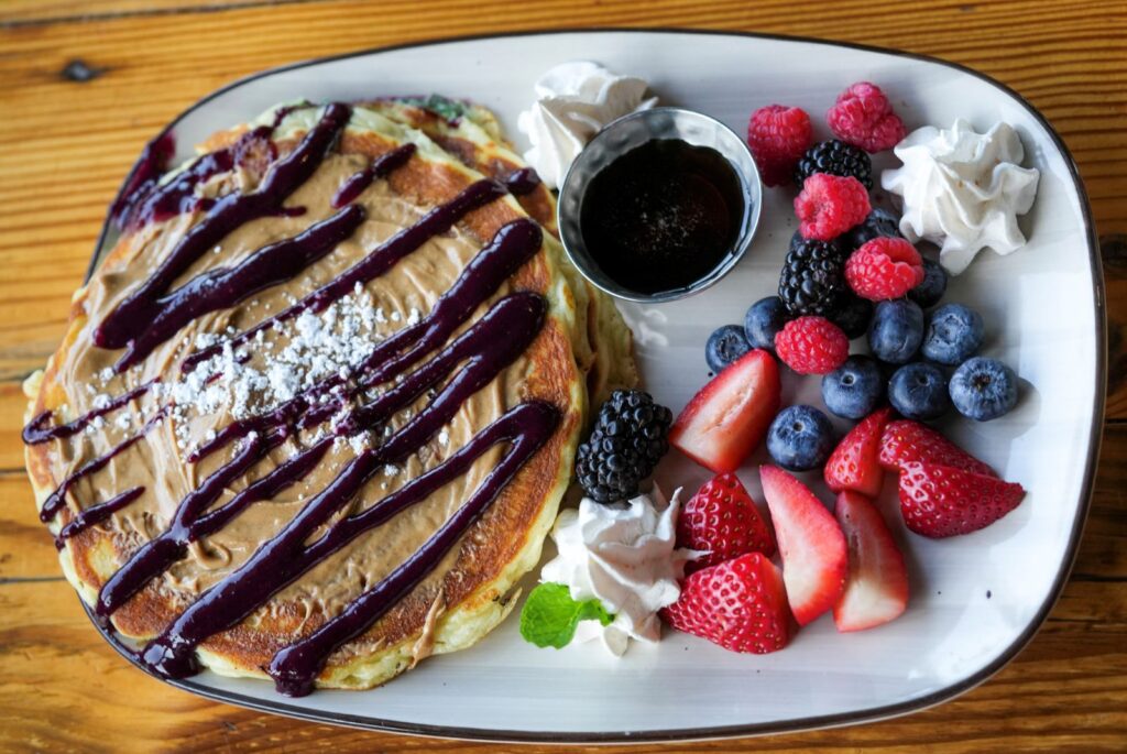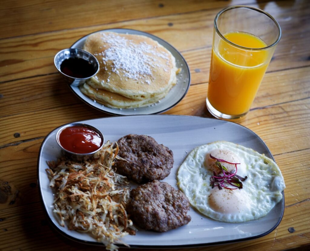 Savory breakfast items range from the Miner’s Omelet ($22) with cream cheese, scrambled eggs, caramelized onions, mushrooms, bacon, Gruyere and side potatoes, to Ricotta Toast ($20), an Everything Versante Bagel ($18), and a more traditional breakfast that I loved: The Thaynes Welcome ($22) is a choice of ham steak, sausage patties or bacon with eggs made to order, a choice of toast or pancakes, and the best, most crispy potato hash I’ve ever eaten. I don’t know how they manage to make hash browns that are so light, crispy and not greasy. It’s a mystery …