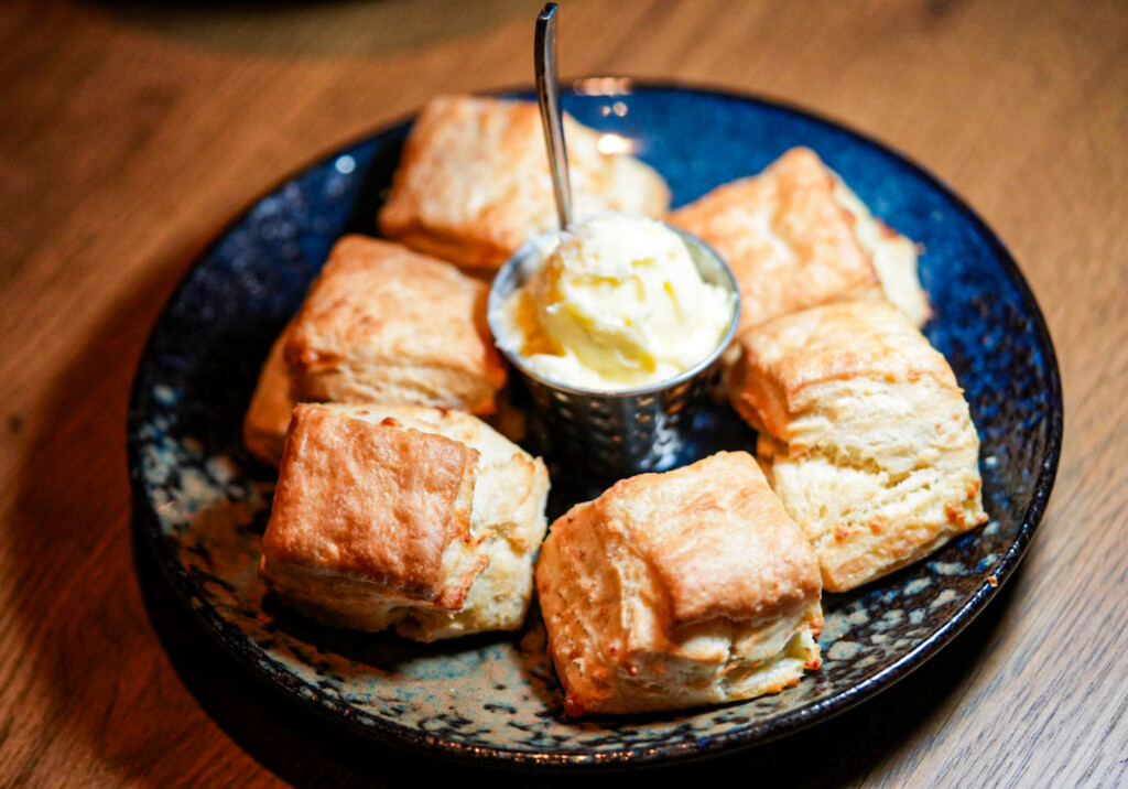 Shareable starters at Hearth and Hill include temptations such as Brown Butter Gnocchi ($16), beer-battered Buffalo Cauliflower ($14), Baked Brie ($17) and more. But don’t even THINK about dining at H&H without ordering the scrumptious Cheddar Biscuits with aged cheddar and honey butter ($11).