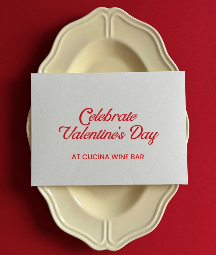 “The truth: Cucina is officially fully booked for Saturday, the 14th. Since ‘the big day’ falls on a Saturday, you have the perfect excuse to celebrate early on Friday the 13th or keep the vibe going on Sunday the 15th. Tell your partner you ‘celebrate love every day’ or that you ‘wanted to avoid the Saturday crowds’ because you’re sophisticated like that. We’ll back you up. Our Valentine’s Tasting Menu (and our regular menu) will be available all three nights.”